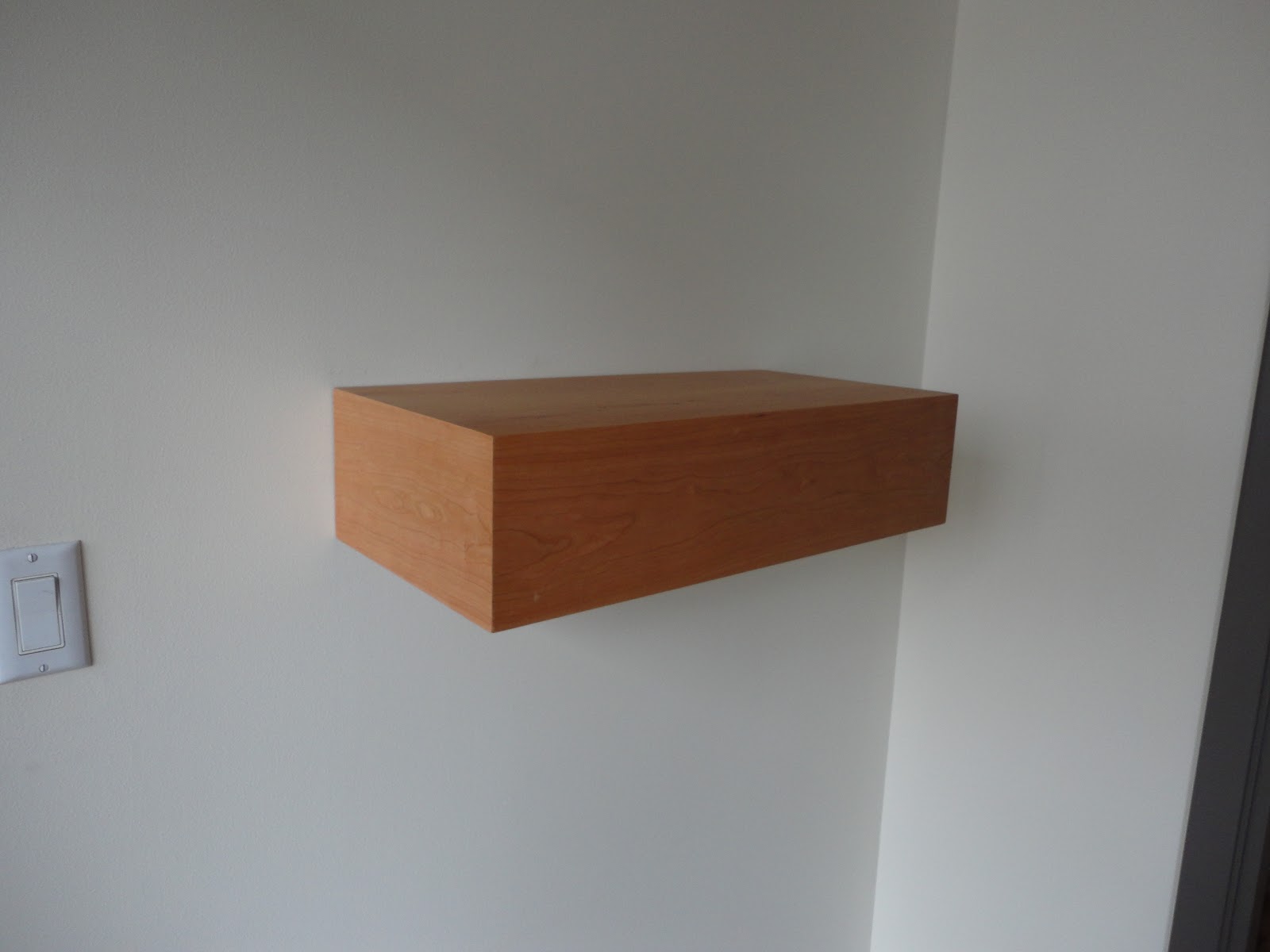 Here is a quick little project I did for a client. A small wall box shelf made of cherry wood, with mitered corners reinforced with wooden splines. It hangs on a french cleat, for a clean look with no hardware showing.